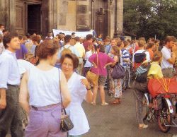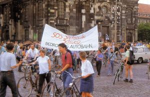 Fahrradstaffeln überbringen Briefe an Sachsens Ministerpräsidenten Biedenkopf, an Umweltminister Vaatz und an Wirtschaftsminister Schommer. |
