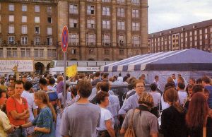 Es ist die Ruhe vor dem Sturm. Die Organisatoren treffen sich auf dem Dresdner Altmarkt vor der Kreuzkirche. Uns bewegt die bange Frage: Wird jemand kommen? |