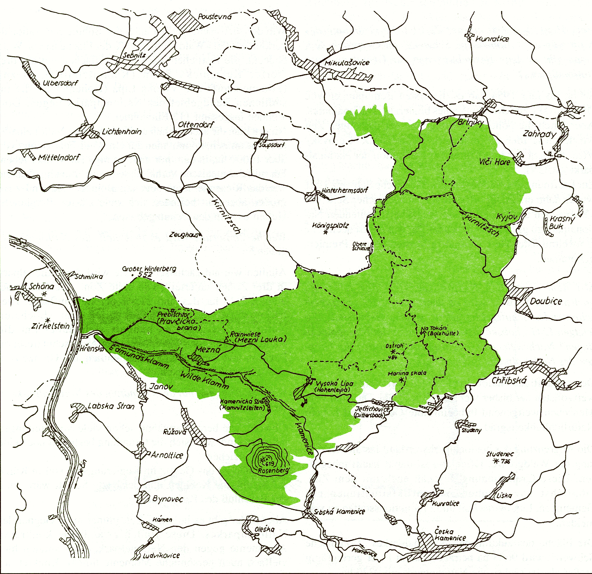 Die Fläche des zukünftigen Nationalparkes "Böhmische Schweiz" wird 9683 ha betragen, damit ist er geringfügig größer als der sächsische Nationalpark mit 9320 ha.