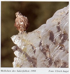 Als große Seltenheit brütete auch in diesem Jahr das einzige Sakerfalkenpaar (Falco cherrug) Deutschlands bei uns auf vier Eiern im selben Horst wie 1997. Raubte im Vorjahr der Uhu die fast flüggen Jungvögel aus dem Horst, so kam es auch in diesem Jahr zum Brutverlust am errechneten Schlupftag, doch konnte die Ursache dafür nicht ermittelt werden.