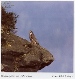 Am Platz I hatte sich das nunmehr achtjährige Weibchen mit einem zweijährigen Männchen verpaart und aus dem Dreiergelege waren zwei Jungfalken geschlüpft, welche aber, wie schon im vergangenen Jahr, spurlos verschwanden! Am Platz II flog heuer nur ein Jungfalke aus. Drei Jungfalken verließen Anfang Juni den Horst im Revier III und das Paar IV zog zwei Junge auf. Zum ersten mal war auch Paar V erfolgreich - drei Jungfalken verließen den Horst, welcher von den tschechischen Bewachern unter täglicher Kontrolle stand. Am Lilienstein (Platz VI) kam es zu keiner erfolgreichen Brut, da das Weibchen an einen anderen Brutplatz gewechselt war und die neue Partnerin noch das Jugendgefieder trug. Am Platz VII flogen zwei Junge aus, nachdem wir hier anfangs gar nicht so recht an eine Brut geglaubt hatten. Durch den ungeklärten Verlust des Weibchens starben die nur wenige Tage alten Jungfalken im Horst vom Platz VIII. Im Revier IX kam es erneut zu keiner Brut, da sich das neue Weibchen auch wieder im Jugendkleid befand. Ganz anders am Platz X, wo das im Jugendgefieder brütende Weibchen einen Jungfalken zum Ausfliegen brachte. An dem neuen Platz XI zog das im Vorjahr am Lilienstein horstende Weibchen mit einem Männchen aus unserer letzten Auswilderung drei Jungfalken auf.